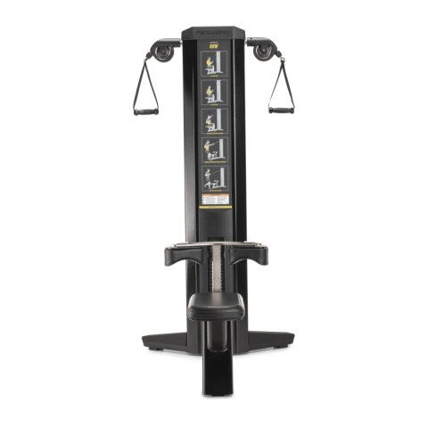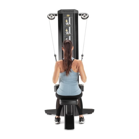 Niezależnie poruszające się uchwyty umożliwiają wykonywanie ćwiczeń jednorącz lub naprzemiennie, co pozwala na jeszcze większe zaangażowanie mięśni. Obrotowe bloczki gwarantują płynny ruch linek, a długi zakres ich pracy (do 193 cm przy jednym ramieniu) zapewnia pełny zakres ruchu, zarówno podczas zginania, jak i prostowania ramion.
