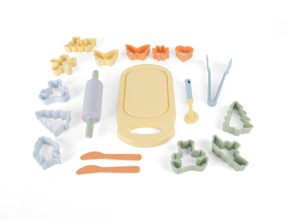 tym deskę, wałek, krajalnicę, nożyki, szczypce i zabawne pastelowe urocze