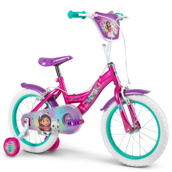 Rowerek 16 calowy dziecięcy Domek Gabbi Dziecięcy Rower od Huffy! Koła 16 calowe z bocznymi kółkami pomocniczymi do nauki jazdy. Świetny rower wykonany z wysokiej jakości i wytrzymałości materiałów, o bardzo atrakcyjnym designie. Żywe kolory i wspaniałe ozdoby z ulubionymi bohaterami Disney. . Najlepszy rower na rozpoczęcie przygody z pedałowaniem na świeżym powietrzu! Kolor różowy Rama: stal Widelec: stal Hamulce: przedni hamulec ręczny i stały na tylne koło w pedałach Siedzisko: miękkie siodło Opony: Gumowe pompowane Felgi: aluminium Rozmiar kół: 16`` Wyposażenie: kółka boczne błotniki osłona łańcucha dekoracyjna osłona kierownicy
