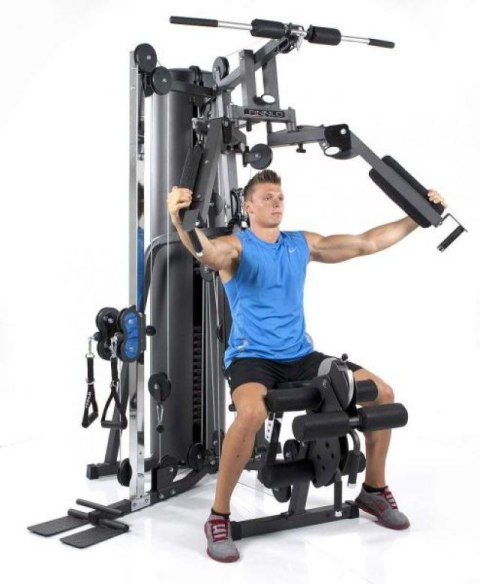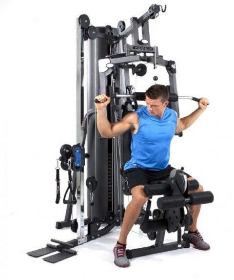 Z boku FINNLO Autark 2200 znajduje się pionowo regulowana podwójna wieża linowa. Można ją również wykorzystać do wykonywania dowolnych ćwiczeń. Górny, środkowy i dolny wyciąg pozwalają na przykład na trening nóg, bicepsa, tricepsa, brzuszki, trening rotatora, wyciąg LAT, ćwiczenia wiosłowe i wiele innych ćwiczeń. Dowolny trening gwarantuje dodatkowe bodźce, które z pewnością przyczynią się do ogromnego wzrostu mięśni.