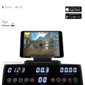 „Biegi na żywo - zaczynasz od aplikacji fitness i ciągle otrzymujesz nowe impulsy zachęcające Cię do treningu. Zainstaluj na tablecie aplikacje Kinomap i ZWIFT. Następnie połącz się szybko i łatwo z komputerem Q.VADIS 7.0 przez Bluetooth. Doświadczysz wyjątkowej atmosfery treningowej i wielu wrażeń na żywo. Z ZWIFT będziesz biegać wśród fascynujących krajobrazów i z globalną społecznością. Wspólnie przemierzajcie kilometry i trenuj ze sportowcami z całego świata. Zintegrowany port USB automatycznie ładuje smartfon lub tablet podczas treningu. Głośniki które są na wyposażeniu bieżni zapewniają dodatkową motywację podczas treningu. Pas biegowy jak w bieżniach w klubie fitness