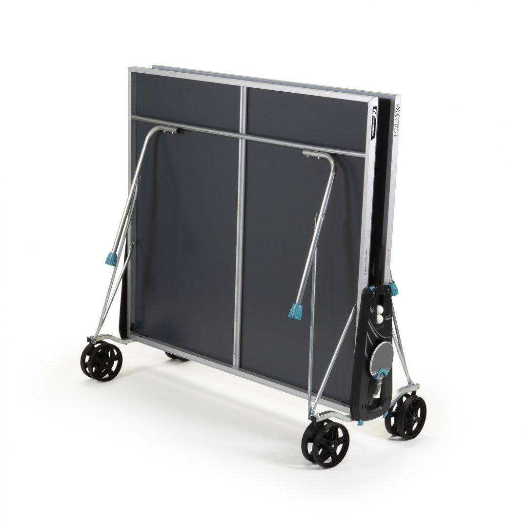 COMPACT TECHNOLOGY®: Opatentowany system zapewnia maksimum bezpieczeństwa i łatwość składania stołu. Złożony stół nie zajmuje dużo miejsca i jest stabilny podczas przechowywania oraz transportowania. Ta technologia pozwala nam także na grę w pojedynkę przez złożenie tylko jednego z blatów.