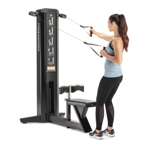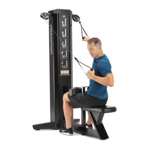 Niezależnie poruszające się uchwyty umożliwiają wykonywanie ćwiczeń jednorącz lub naprzemiennie, co pozwala na jeszcze większe zaangażowanie mięśni. Obrotowe bloczki gwarantują płynny ruch linek, a długi zakres ich pracy (do 193 cm przy jednym ramieniu) zapewnia pełny zakres ruchu, zarówno podczas zginania, jak i prostowania ramion.
