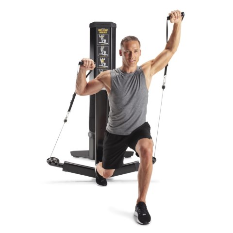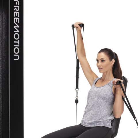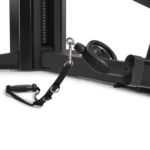 Niezależnie poruszające się uchwyty umożliwiają wykonywanie ćwiczeń jednorącz lub naprzemiennie, co pozwala na jeszcze większe zaangażowanie mięśni. Obrotowe bloczki gwarantują płynny ruch linek, a długi zakres ich pracy (do 193 cm przy jednym ramieniu) zapewnia pełny zakres ruchu, zarówno podczas zginania, jak i prostowania ramion.