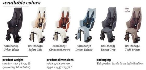 - Łatwy montaż i demontaż — dzięki systemowi Easy, fotelik można szybko zamontować na bagażniku rowerowym oraz łatwo przenieść między rowerami.
