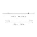o długości 183 cm i maksymalnym obciążeniu 250 kg to solidny i efektywny sprzęt do treningu siłowego. Wyposażony w wygodny uchwyt o długości 131 cm, co umożliwia różnorodne ćwiczenia. Długość części roboczej 2 x 24 cm zapewnia miejsce na dodatkowe obciążenia. Zastosowanie wysokiej jakości materiałów i precyzyjna konstrukcja sprawiają, że jest to doskonały gryf zarówno dla początkujących, jak i bardziej zaawansowanych adeptów siłowni.