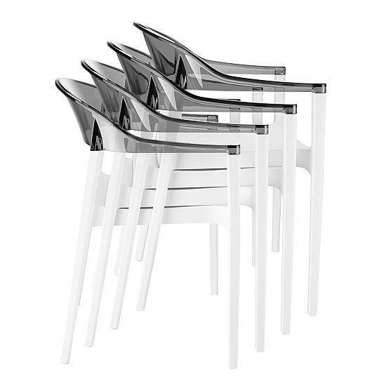 Krzesło z podłokietnikami - fotel carmen to połączenie efektownego i kompaktowego produktu z korzystną ceną. Oparcie wykonane z przezroczystego poliwęglanu, a siedzisko z nierysującego się polipropylenu. Kompaktowe wymiary powodują, że Carmen jest częstym elementem wyposażenia jadalni, kuchni czy salonu. Bardzo szeroka paleta kolorów zadowoli najbardziej wymagających klientów. 3 Lata gwarancji oraz certyfikaty TÜV i Catas zapewniają długoletnie i bezproblemowe użytkowanie. Poprzez połączenie tańszego materiału jakim jest polipropylen z wykończeniem z poliwęglanu osiągnięto kompromis cenowy i estetyczny. Mebel łączy w sobie gabaryty krzesła z funkcjonalnością i wygodą fotela. Możliwości zastosowania są w zasadzie nieograniczone począwszy od jadalni poprzez salon aż do pojedynczych zastosowań. Krzesło stylizowane na krzesła z lat 60-tych uchodzących za kanon w designie mebli. Fotele są odporne na zarysowania oraz na promieniowanie UV.
