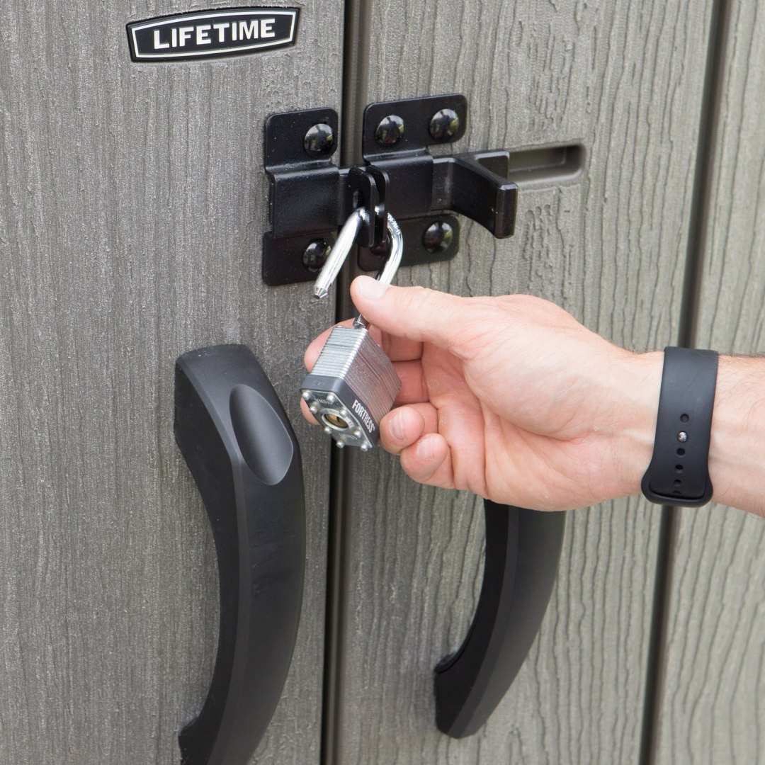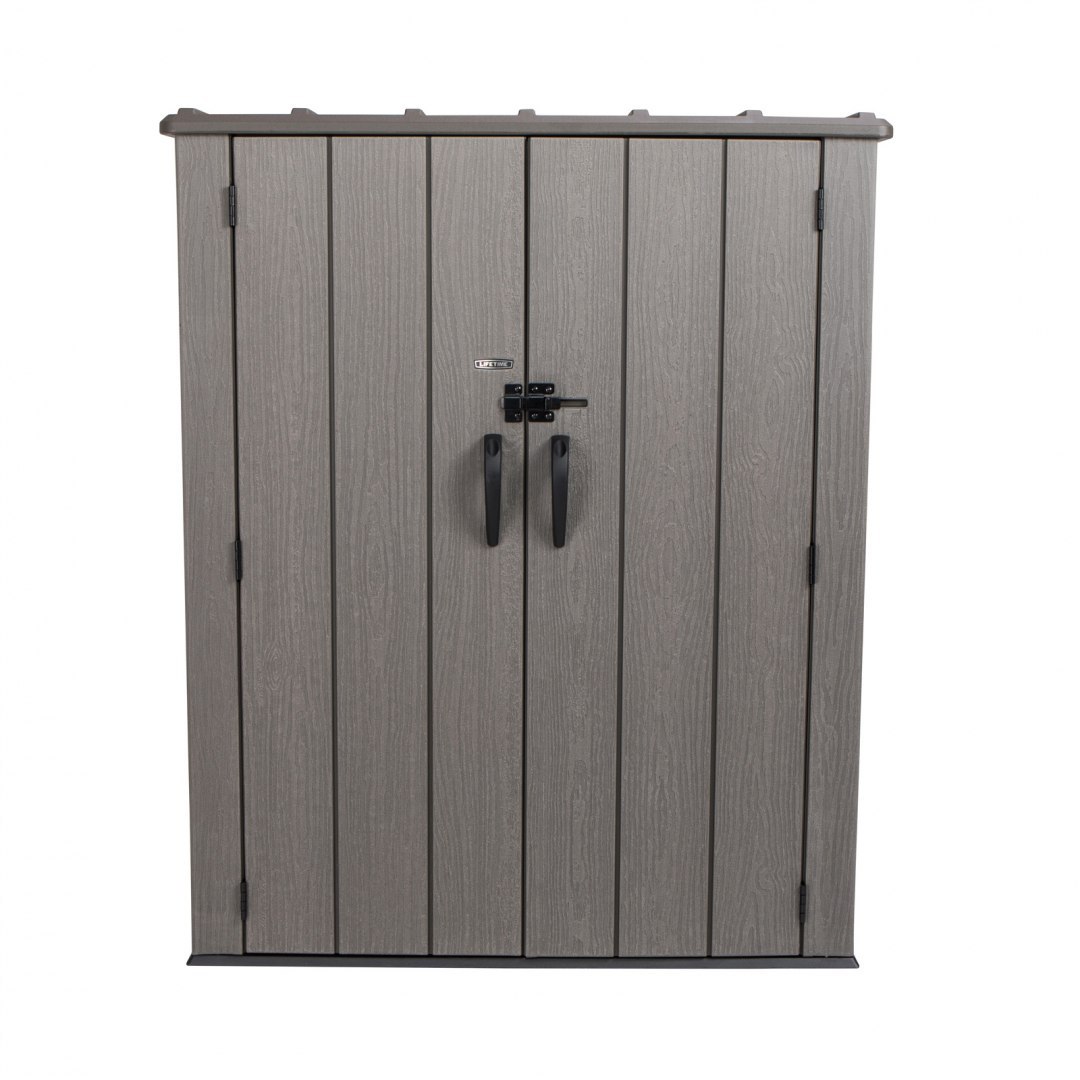 Szafa ogrodowa o wymiarach 174 x 142 x 74 cm wyprodukowana przez markę Lifetime z USA to innowacyjny produkt wykonany z plastiku o najwyższej jakości - 100% polietylenu wysokiej gęstości (HDPE). Doskonałe uzupełnienie ogrodu lub przydomowego składzika, w którym na przykład można schować narzędzia ogrodowe lub drewno. Dzięki strukturze imitującej prawdziwe drewno, świetnie wkomponuje się w otoczenie. Sztywna, dwuścienna konstrukcja z HDPE wzmocniona stalą sprawia, że szafa jest mocna i niezawodna. Pokryta warstwą ochronną przed promieniowaniem UV, aby zapobiegać blaknięciu i pękaniu. Odporna na plamy powierzchnia nigdy nie wymaga malowania - to zdecydowana przewaga nad drewnianymi szafami! Zamykane podwójne drzwi zabezpieczone dwiema zasuwami w lewym skrzydle oraz jedną zasuwką z przodu, którą można dodatkowo zabezpieczyć kłódką.