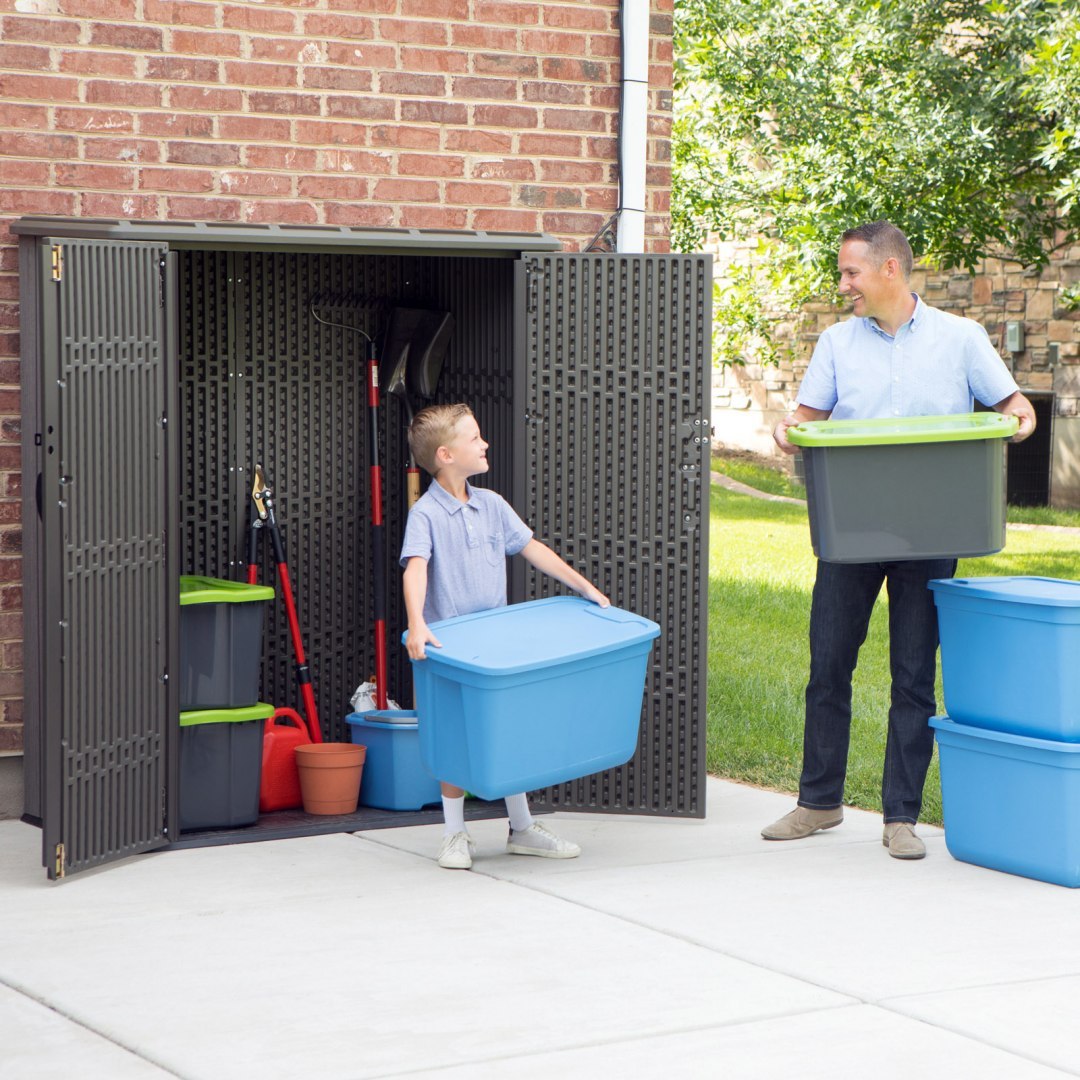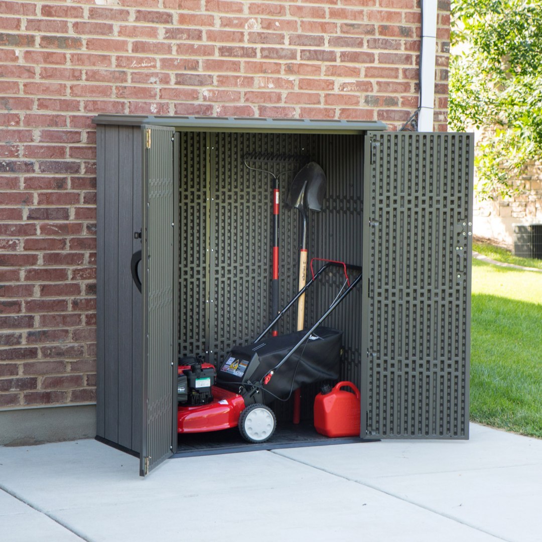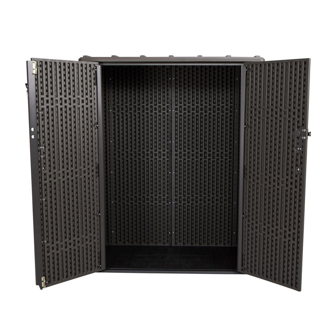 Sztywna, dwuścienna konstrukcja z HDPE wzmocniona stalą sprawia, że szafa jest mocna i niezawodna. Pokryta warstwą ochronną przed promieniowaniem UV, aby zapobiegać blaknięciu i pękaniu. Odporna na plamy powierzchnia nigdy nie wymaga malowania - to zdecydowana przewaga nad drewnianymi szafami!