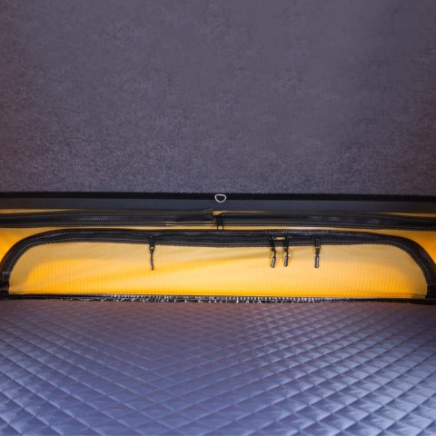 Wewnętrzna część pokrywy pokryta jest miękką wykładziną samochodową, do której można mocować na rzepach różne akcesoria, takie jak torby, kieszenie, oświetlenie, powerbanki, itp.