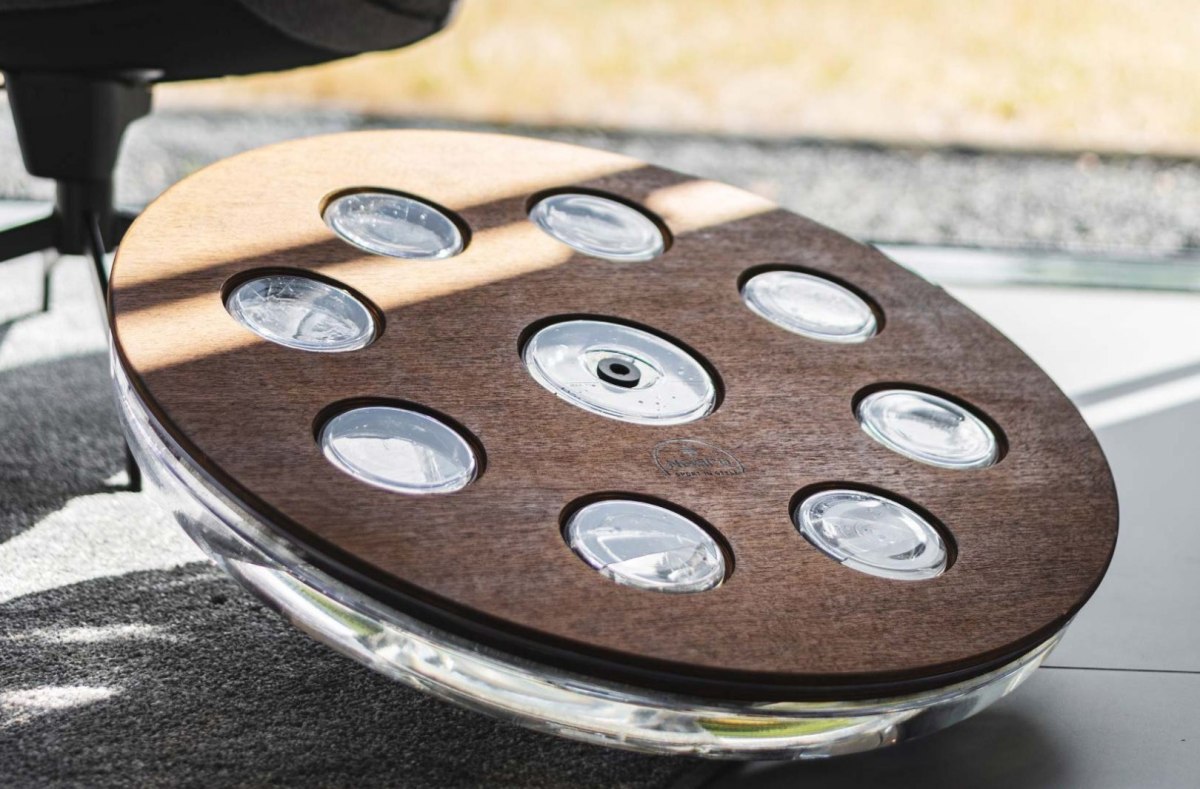 Platforma do balansowania Eau-Me Board została wykonana z wysokiej jakości drewna oraz nakładki ze stali nierdzewnej. Połączenie podstawy ze zbiornikiem na wodę wykonanym z polikarbonu skutkuje skutecznym i wydajnym treningiem równowagi. Dzięki platformie Eau-Me poprawimy koordynację ruchową oraz kondycję.