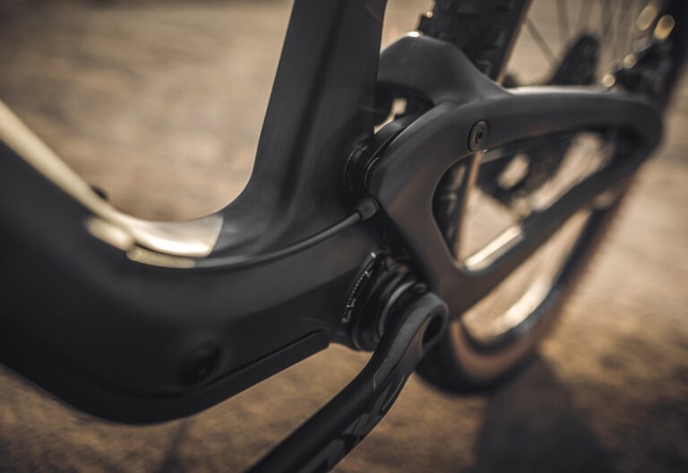 With the shock placed internally, we are able to design an ultra compact linkage system for low weight and high stiffness. The linkage is directly attached to the shock and mounted to an axle inside the frame, meaning the suspension pivots no longer have to be constructed around the frame.