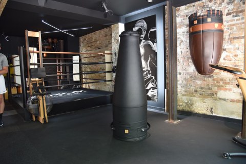 Stabilność zapewniają cztery betonowe podstawy o łącznej wadze 75 kg, co sprawia, że worek może swobodnie stać, bez konieczności dodatkowego mocowania. Możliwość odchylenia do 30° otwiera nowe możliwości w zakresie różnorodności treningów.